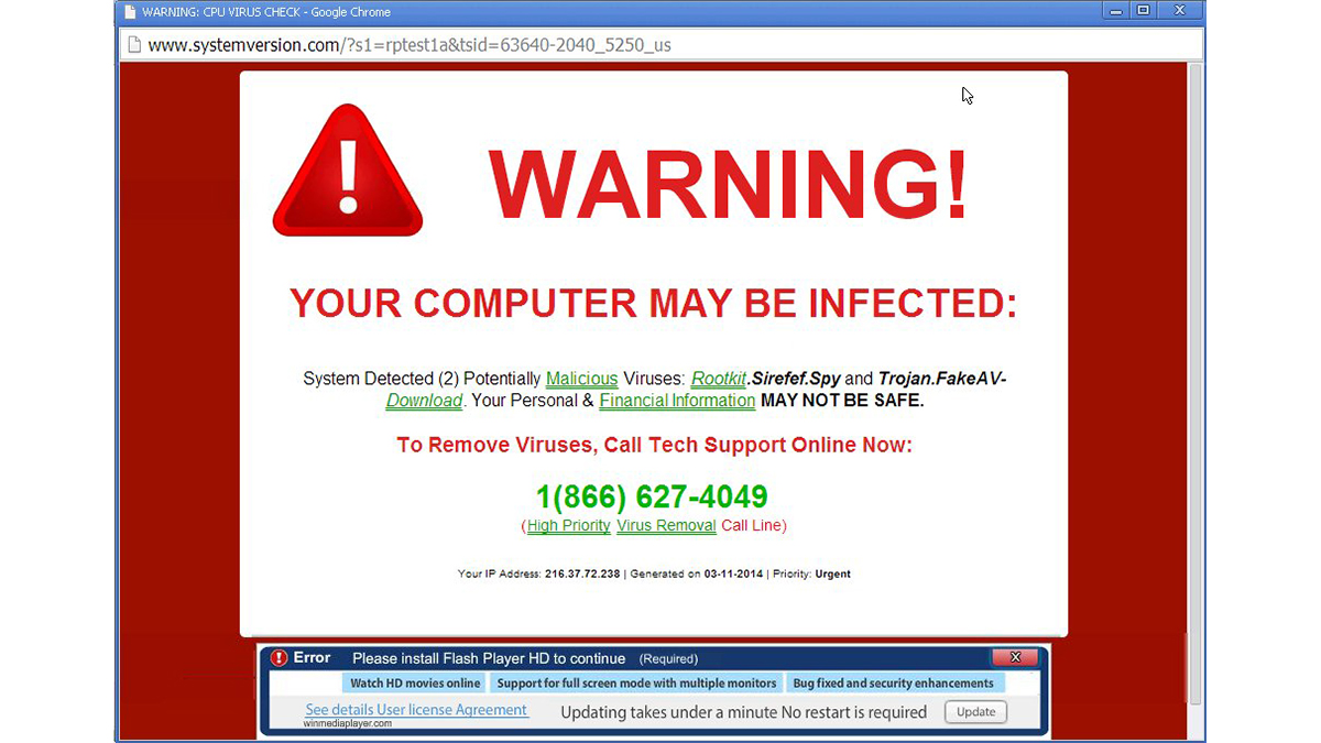 Пример черного оффера с якобы заражением ПК пользователя вирусом